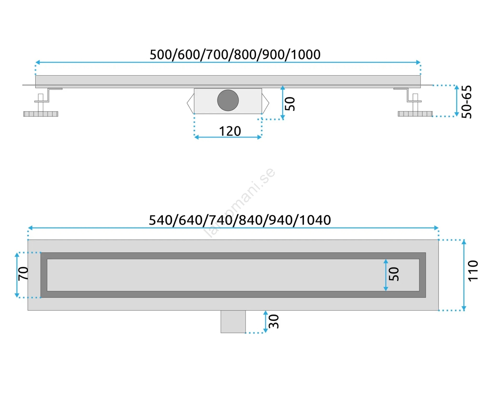 • Linjär golvbrunn med längd 50 cm i matt svart.