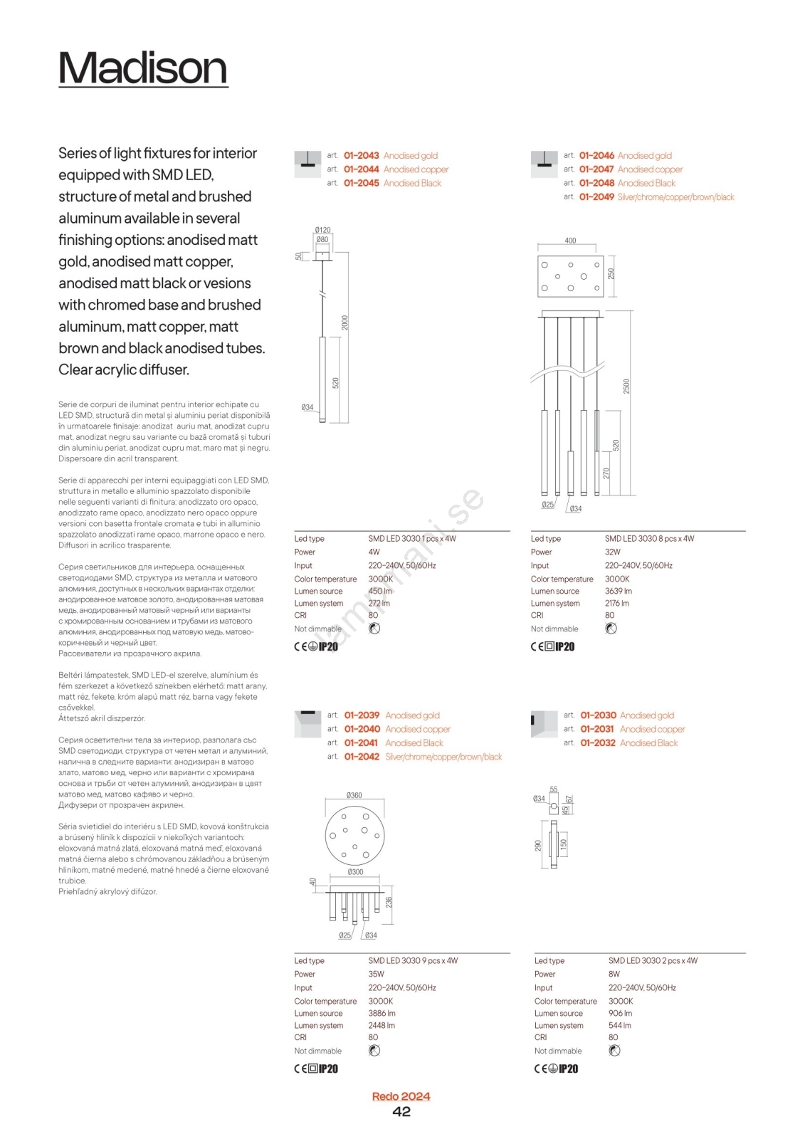 • Redo 01-2042 - LED taklampa MADISON 9xLED/4W/230V skinande krom/svart/koppar
