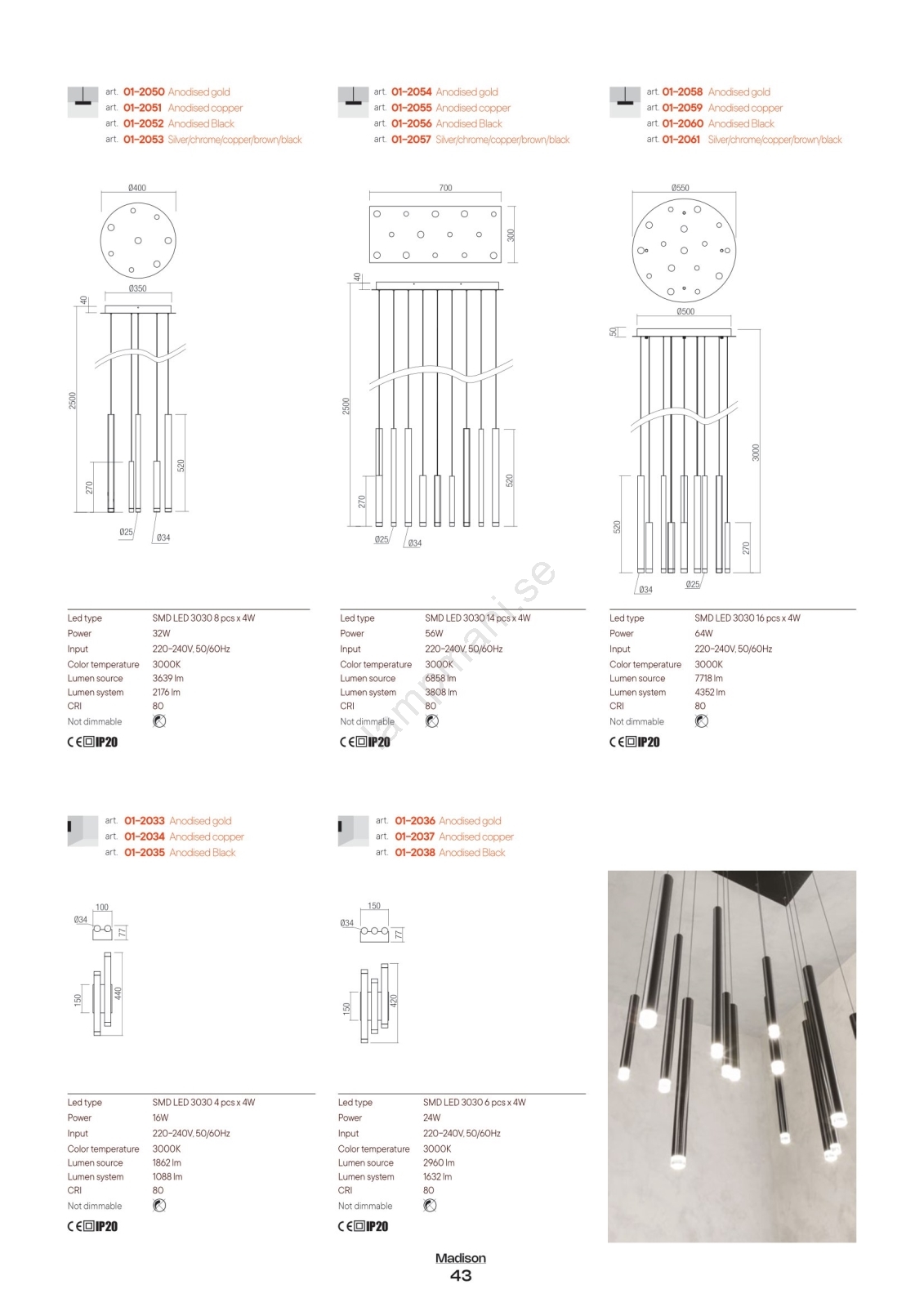 Redo 01-2047 - LED ljuskrona med textilsladd MADISON 8xLED/4W/230V koppar | Lampmani