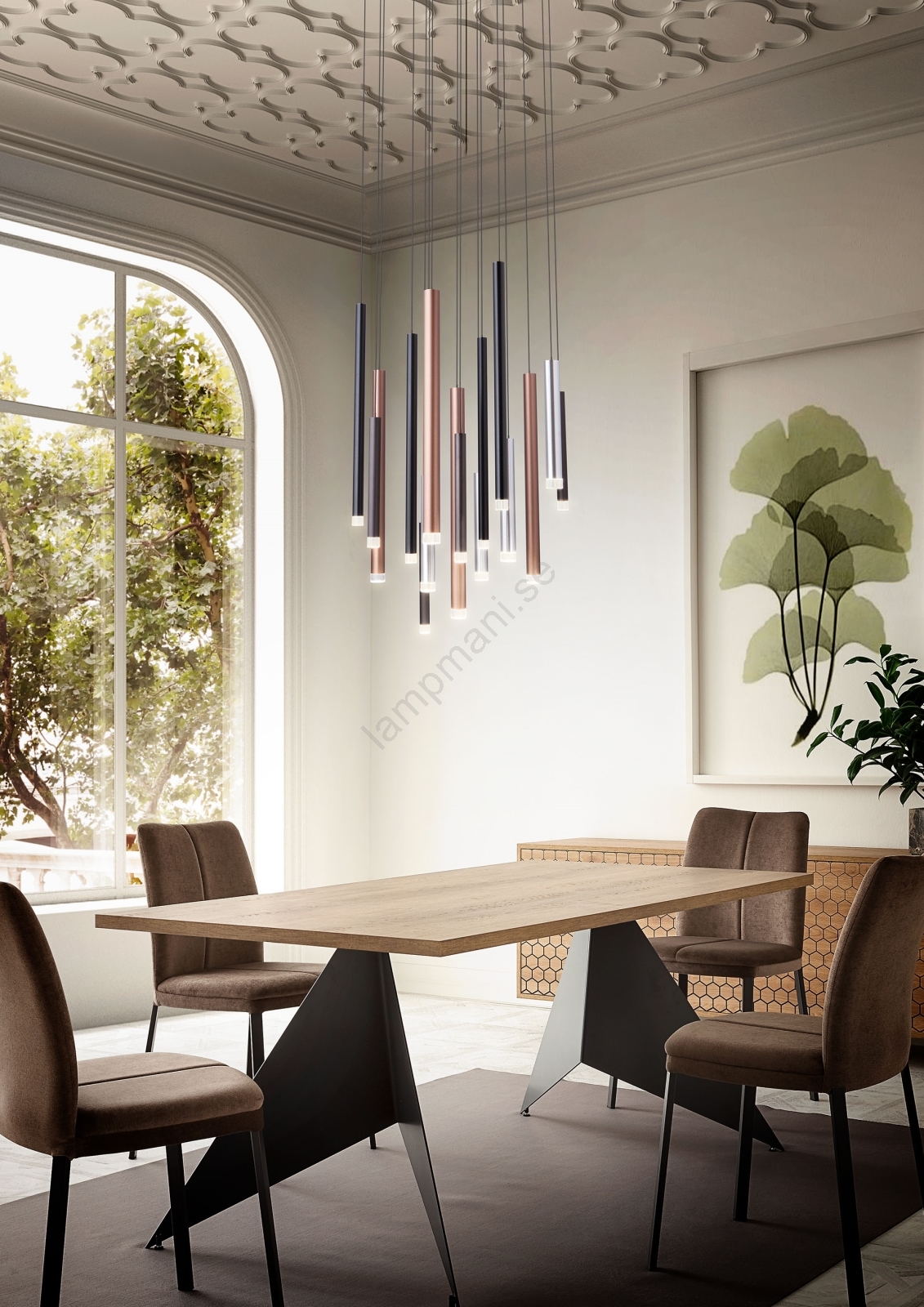 Redo 01-2057 - LED ljuskrona med textilsladd MADISON 14xLED/4W/230V skinande krom/svart/koppar | Lam