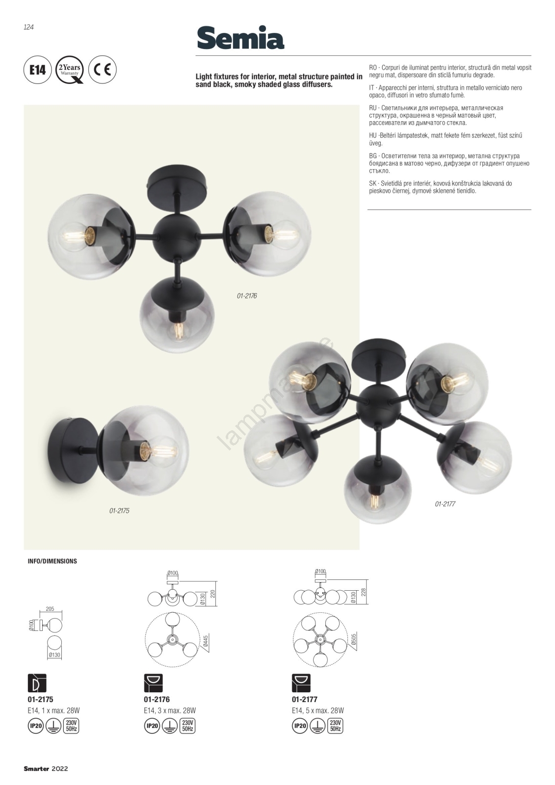 Redo 01-2176 - Taklampa med stång SEMIA 3xE14/28W/230V svart/rökfärgad kännetecknar snygg och funktionell design. En glödlampa med E14 lock är lämplig för lampan. Här kan du köpa andra glödlampor till förmånliga priser. Du kommer att få ett intressant tillägg till ditt hem.