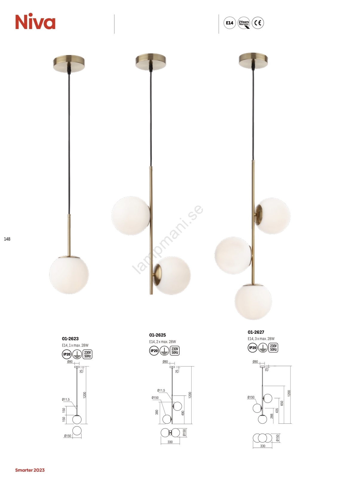 Redo 01-2627 - Ljuskrona med textilsladd NIVA 3xE14/28W/230V | Lampmani