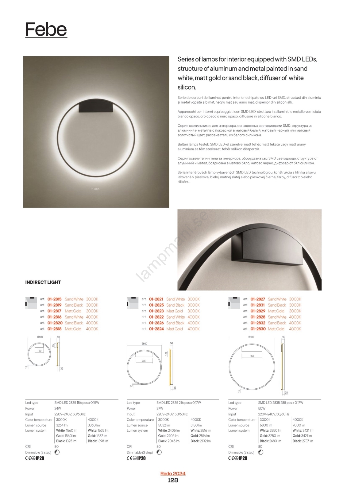 Redo 01-2819 - LED ljusreglerad vägglampa FEBE LED/24W/230V svart | Lampmani