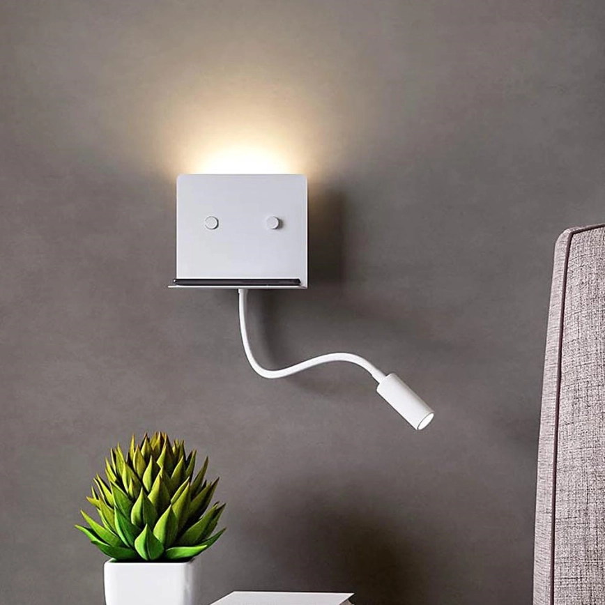 Redo 01-3210 - LED väggbelysning med en flexible liten lampa MOKA LED/6W + LED/3W/230V USB CRI90 vit