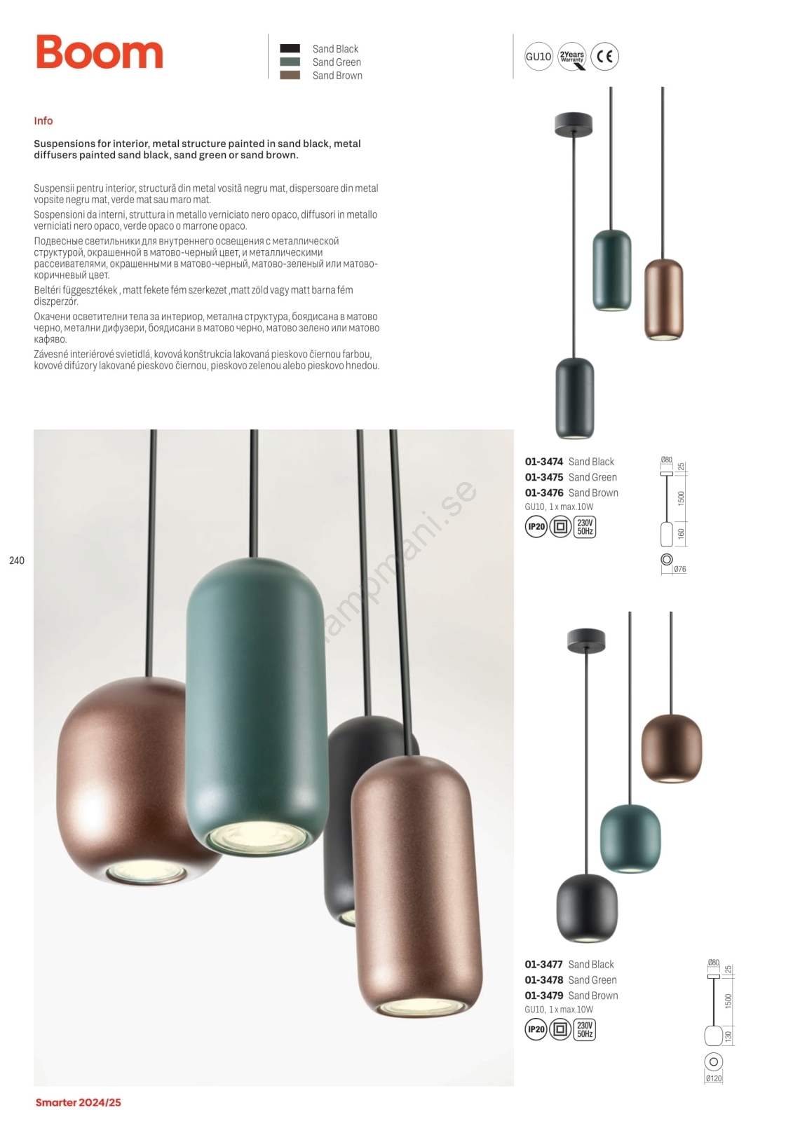 Redo 01-3478 - Ljuskrona med textilsladd BOOM 1xGU10/10W/230V diameter 12 cm grön kännetecknar snygg och funktionell design. En glödlampa med GU10 lock är lämplig för lampan. Här kan du köpa andra glödlampor till förmånliga priser. Du kommer att få ett intressant tillägg till ditt hem.