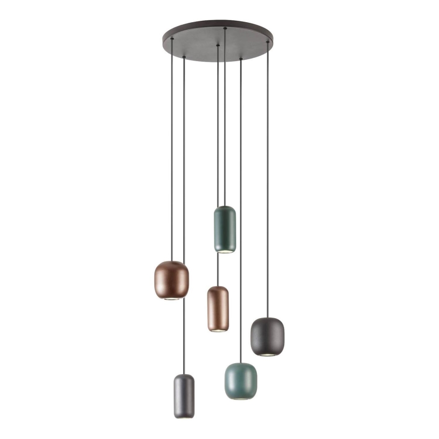 Redo 01-3482 - Ljuskrona med textilsladd BOOM 6xGU10/10W/230V diameter 48 cm svart/grön/brun | Lampm