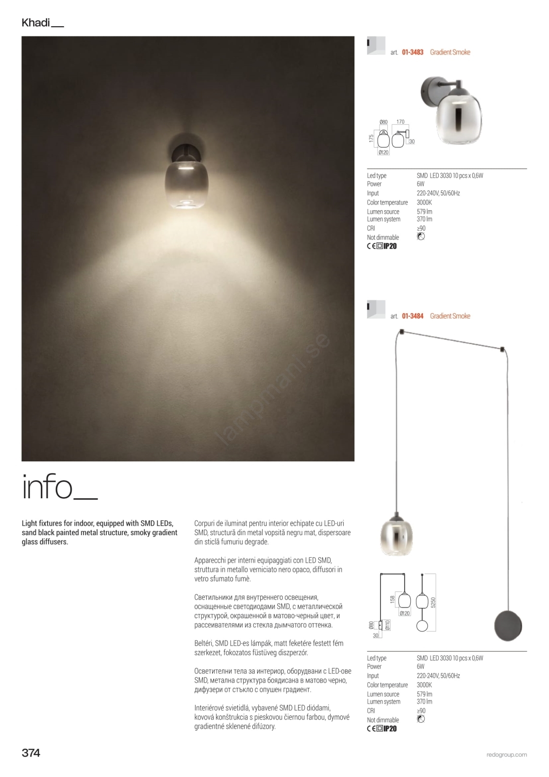 Redo 01-3487 -LED Dimbar pendellampa på vajer KHADI 5xLED/5,2W/230V svart/rökfärgad | Lampmani