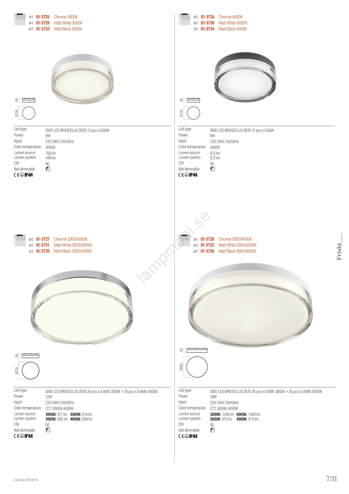 Redo 01-3729 - LED Taklampa FRISBI LED/8W/230V IP44 vit | Lampmani