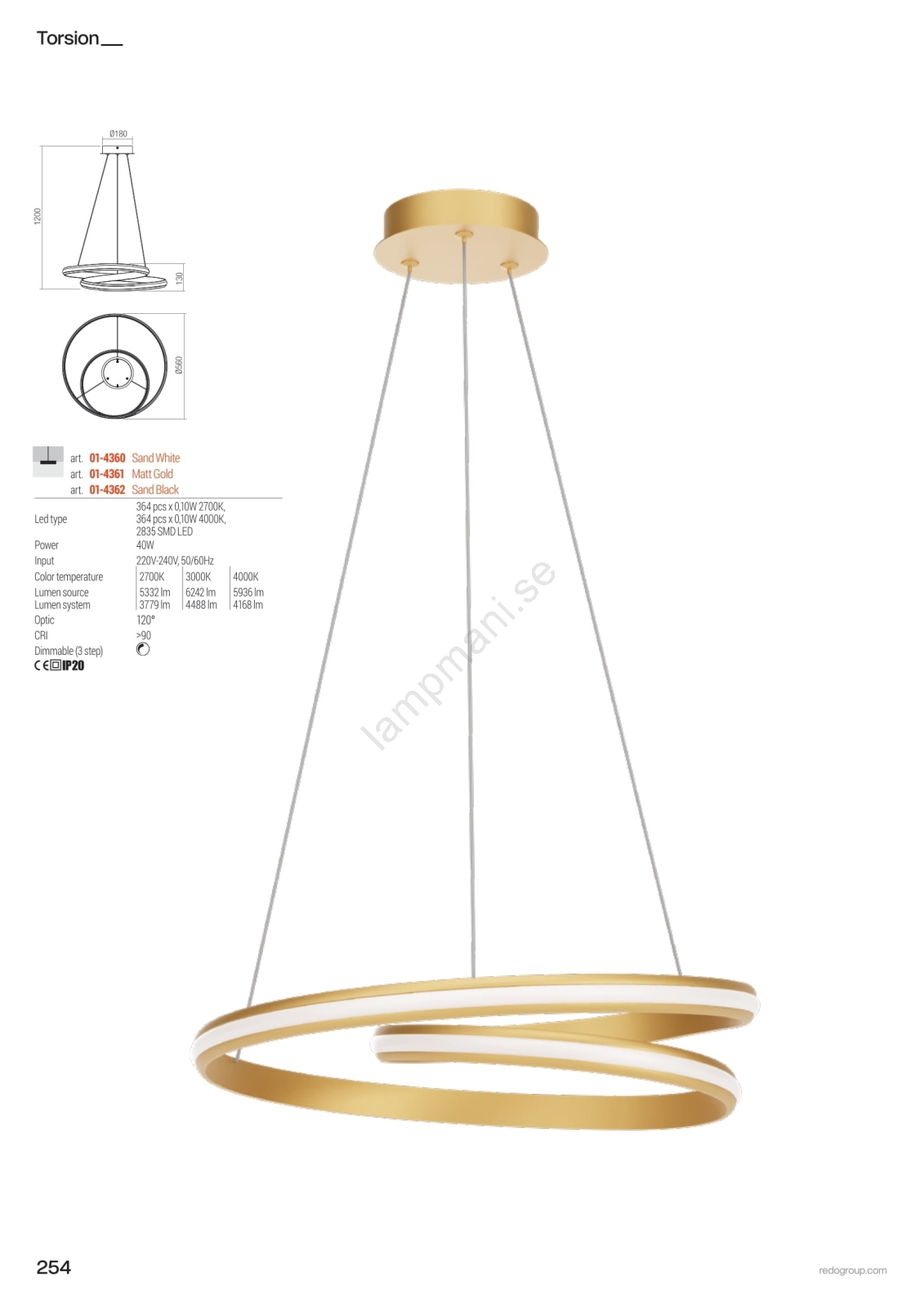 Redo 01-4362 - Dimmbar LED-pendellampa på vajer TORSION LED/40W/230V svart | Lampmani