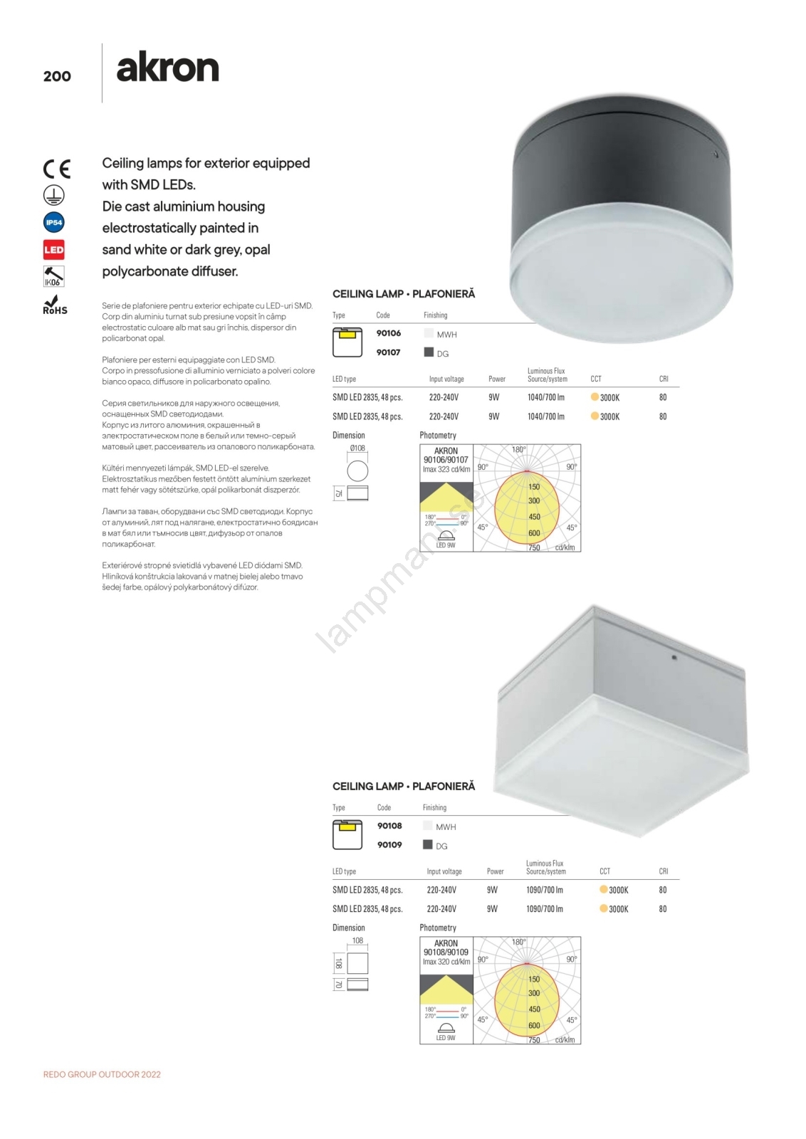 Redo 90107 - LED taklampa för utomhusbruk AKRON 1xLED/9W/230V IP54 | Lampmani
