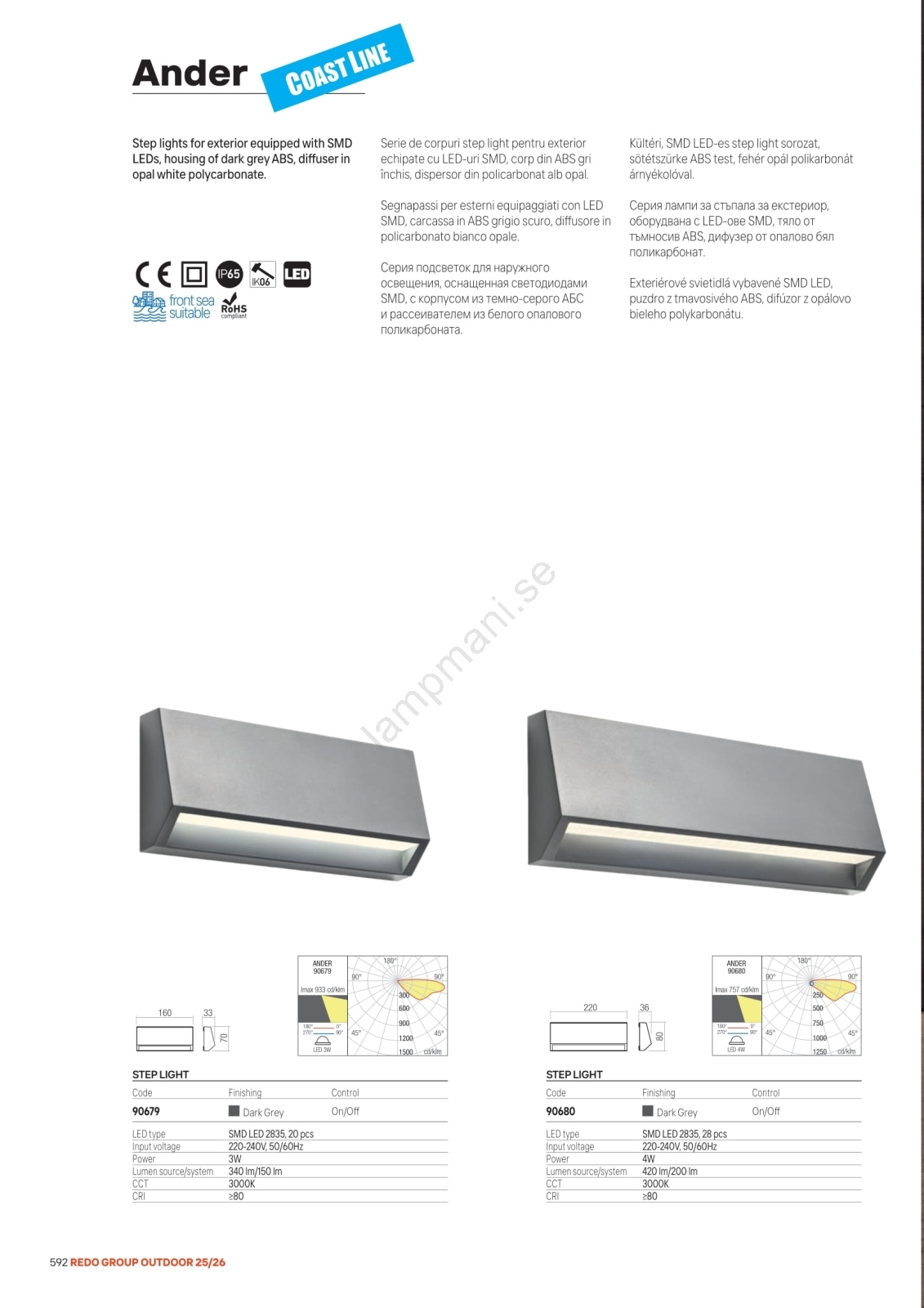Redo 90679 - Utomhusorienteringsarmatur ANDER LED/3W/230V 3000K IP65 antracit | Lampmani