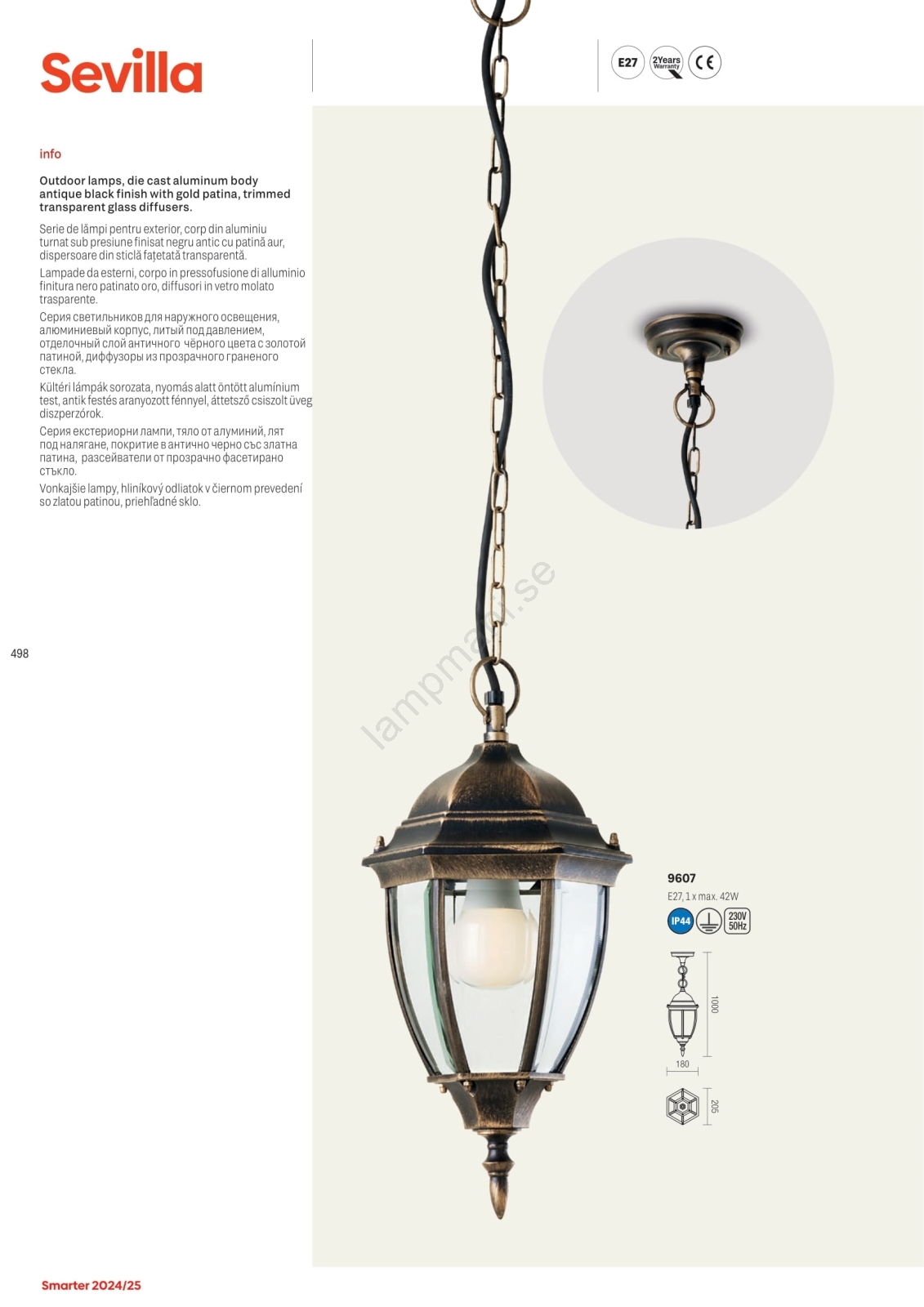 Redo 9604 - Vägglampa för utomhusbruk SEVILLA 1xE27/42W/230V IP44 guld/patina kännetecknar snygg och funktionell design. En glödlampa med E27 lock är lämplig för lampan. Här kan du köpa andra glödlampor till förmånliga priser. Du kommer att få ett intressant tillägg till ditt hem.