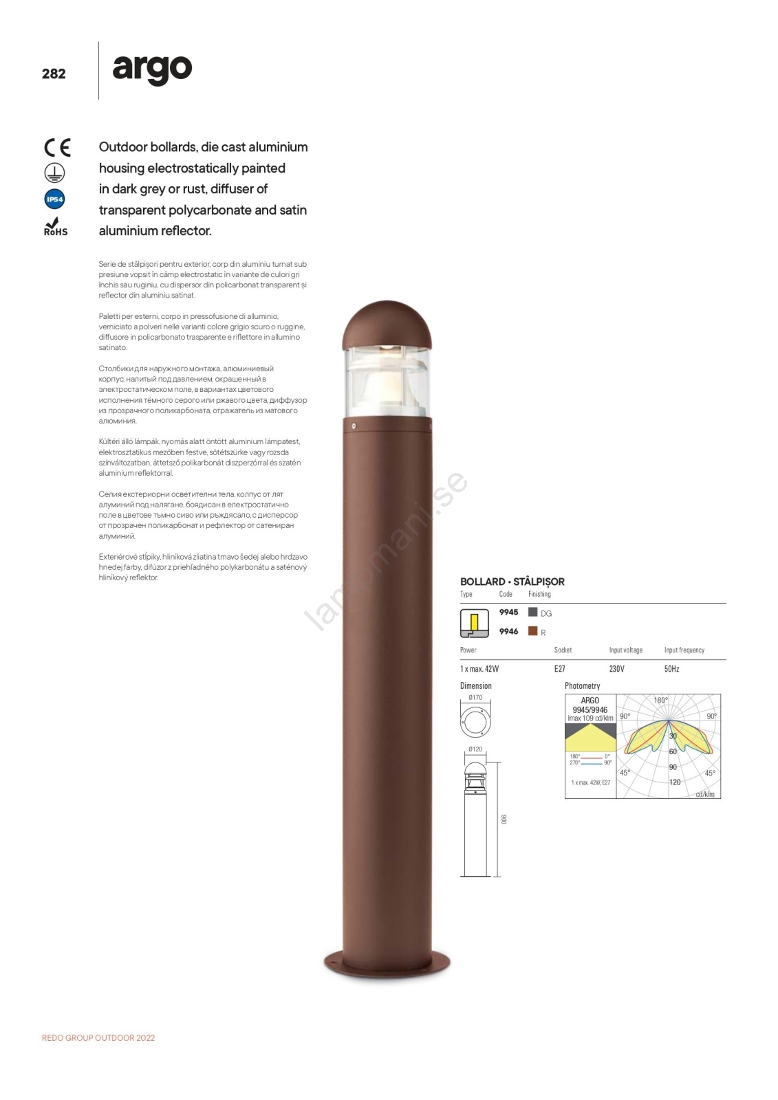 redo 9945 - Utomhus Golvlampa ARGO 1xE27/42W/230V IP54 | Lampmani