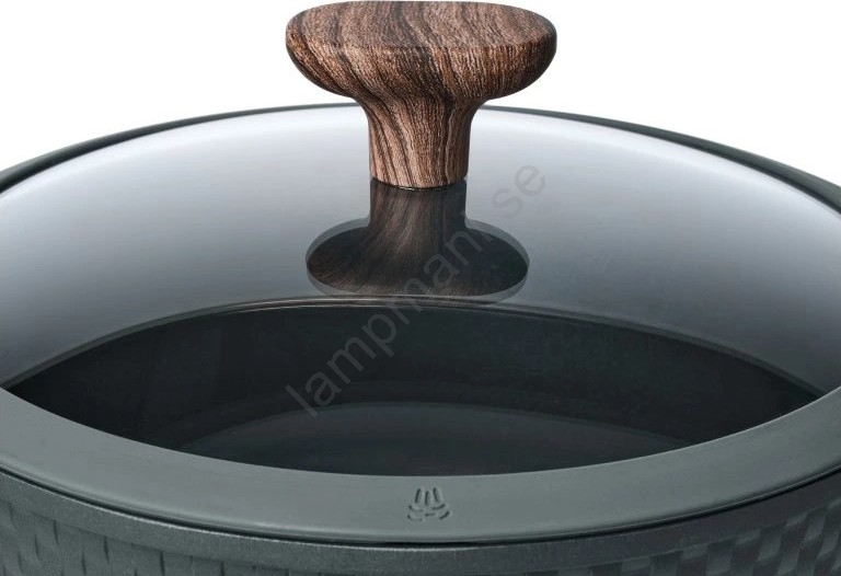 • Medföljer gör ett tåligt glaslock med silikonlist och ångventil, som möjliggör effektiv övervakning av tillagningsprocessen utan onödig värmeförlust.