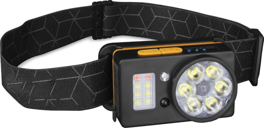 Uppladdningsbar LED-pannlampa med sensor och powerbankfunktion — 1200 mAh, IP44, svart