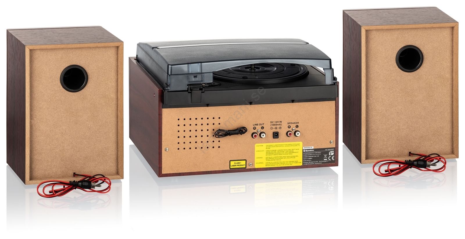 • Högkvalitativ skivspelare med hastigheter 33, 45 och 78 varv/min, med auto-stop och automatisk återgång.