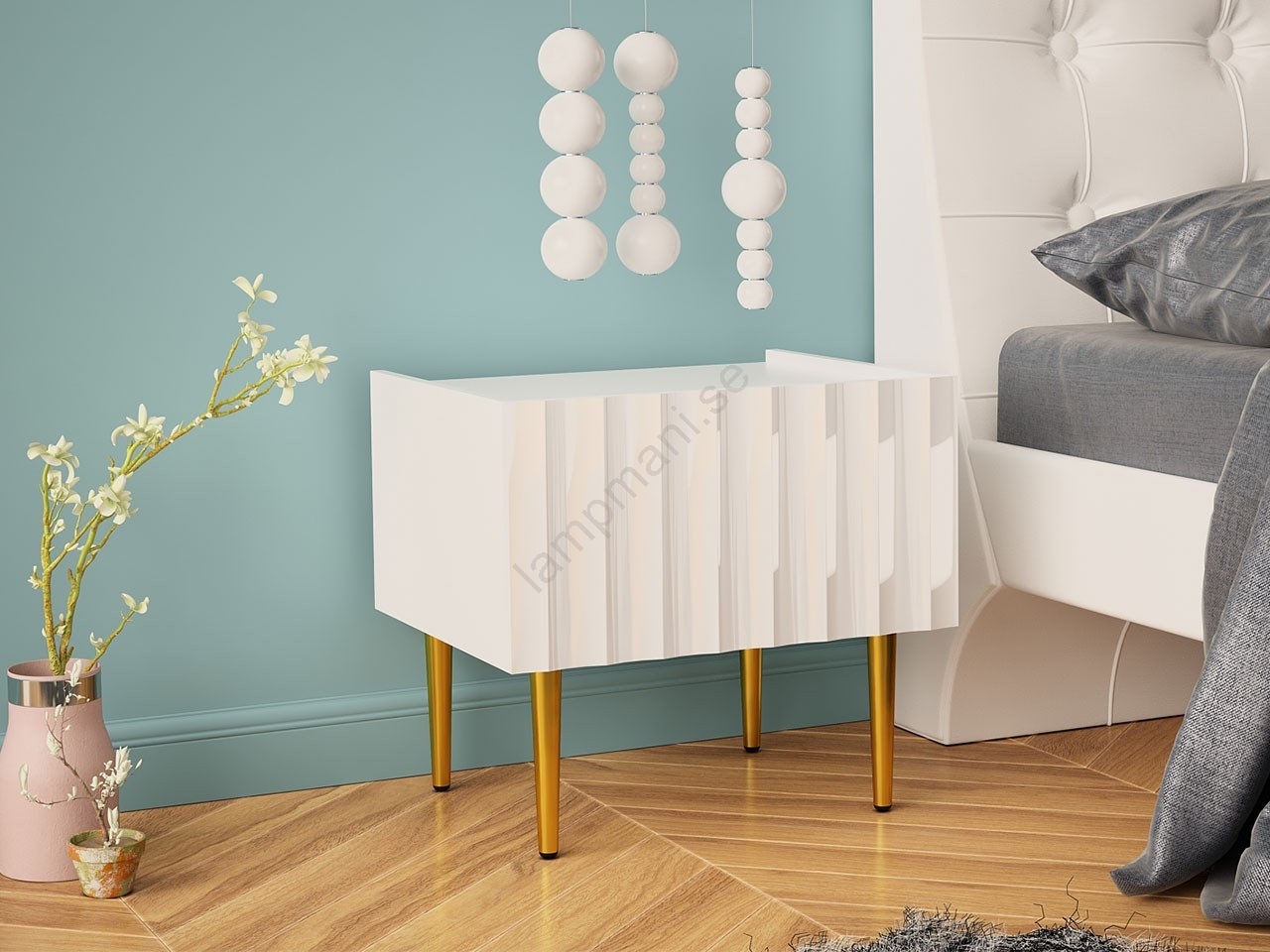 Nattduksbord ARCOS 46x50 cm vit/guld | Lampmani