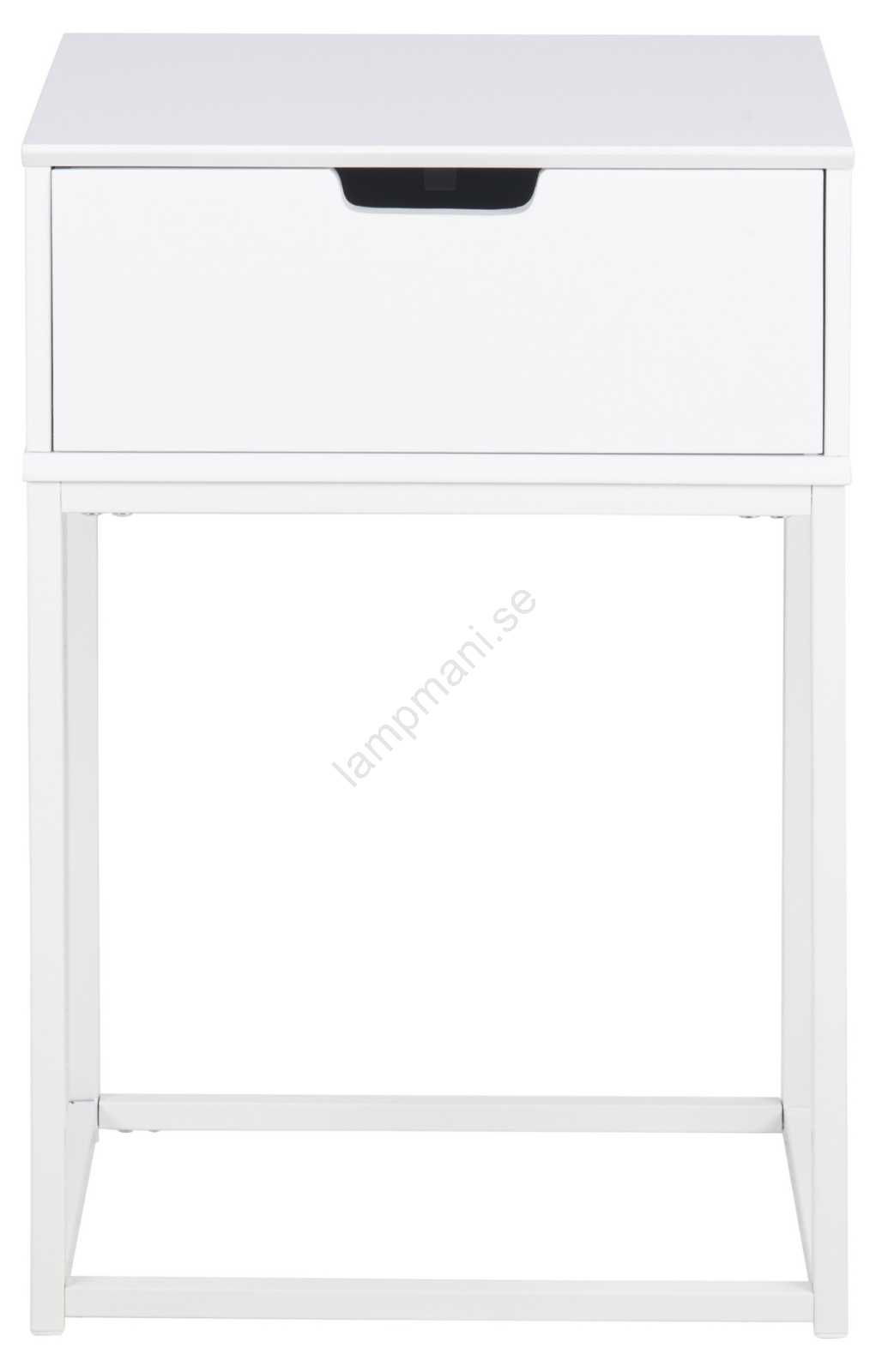 • Topplatta, ram och låda i MDF med UV-lack i vitt, underrede i stål med vit pulverlack.