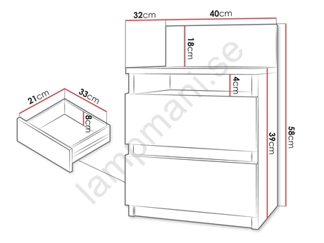 • Två rymliga lådor för förvaring av saker du vill ha nära till hands.