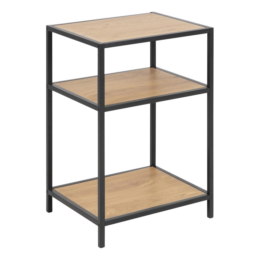 • Toppskiva och 2 hyllor i matt craftlaminat, underrede i matt svart stål med grov pulverlackering.