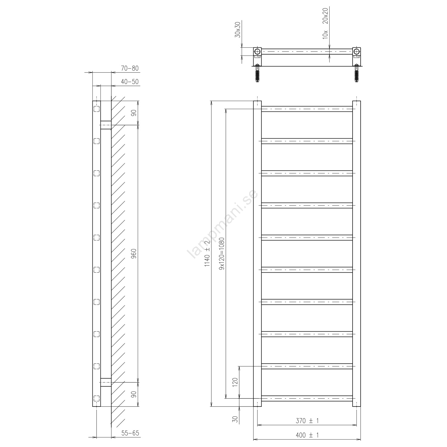 Sapho - Badrumsradiator METRO DOS 247 W/230 V 40 x 114 cm matt svart | Lampmani