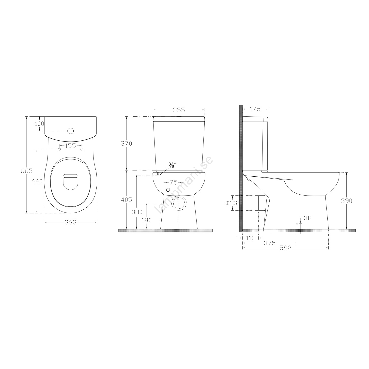 • Denna modell är avsedd för bakre utloppsanslutning.