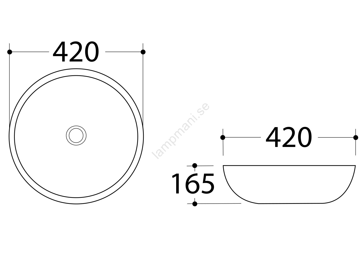 • Keramiskt tvättställ för bänkskiva med diameter 420 mm.
