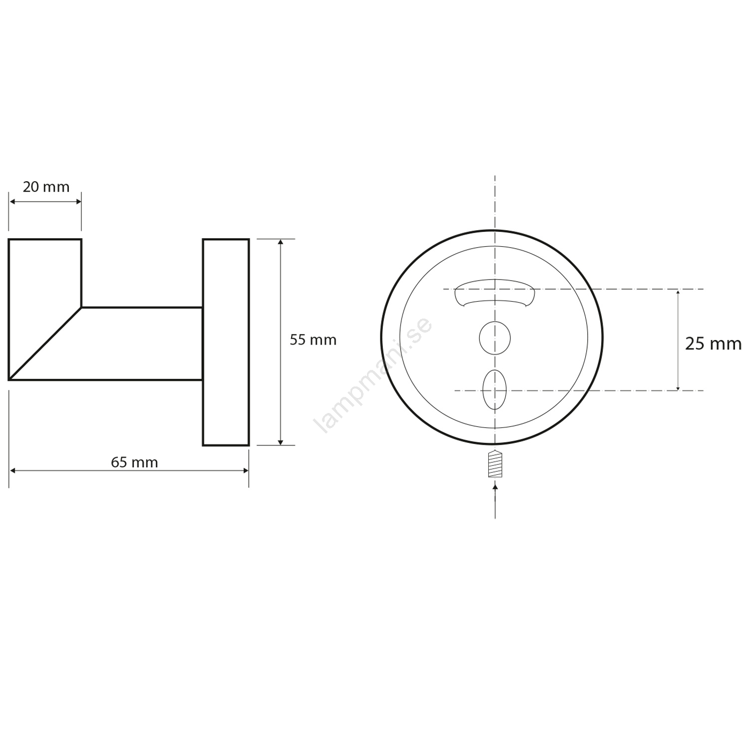 Sapho - X-ROUND väggkrok 5,5 x 6,5 cm, svart | Lampmani