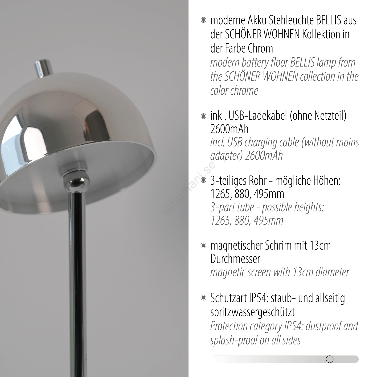Schöner Wohnen 19245-17 - Dimbar LED-golvlampa BELLIS LED/2,5W/5V IP54 krom | Lampmani