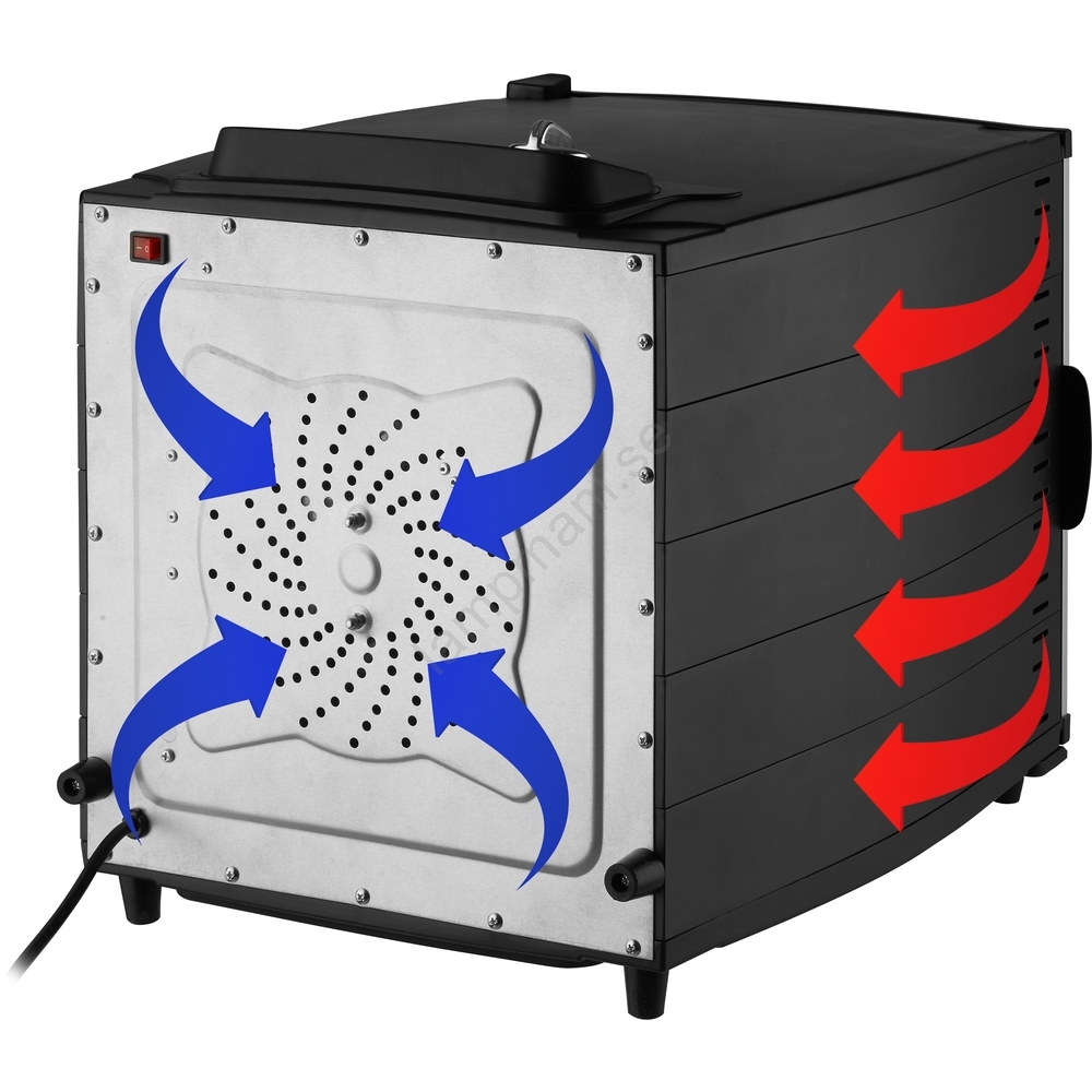 • Storkapacitetsmatberedare med en total torkyta på 1,11 m2 (60 % större än en vanlig matberedare med en diameter på 32 cm).