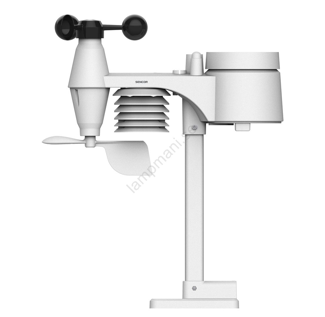 • Sensorn mäter vindhastighet och vindriktning, regnmängd, temperatur, luftfuktighet, ljusintensitet och UV-strålning.
