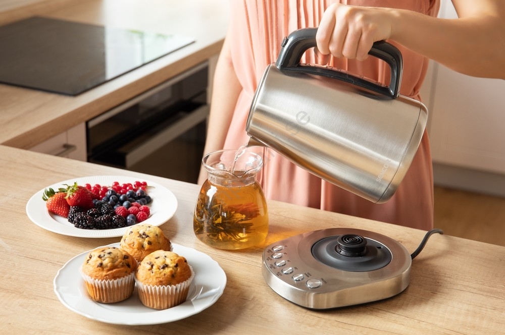 • Vattenkokare i rostfritt stål med en kapacitet på 1,7 liter.