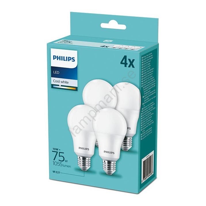 SET 4xLED-lampa Philips A60 E27/10W/230V 4000K Kvalitetsdesign garanterar perfekt belysning av din interiör. Kategorin E27 är avsedd för glödlampor med samma sockel. Här kan du välja mellan traditionella glödlampor eller de många moderna LED-lamporna som är mer energieffektiva och har en längre livslängd.