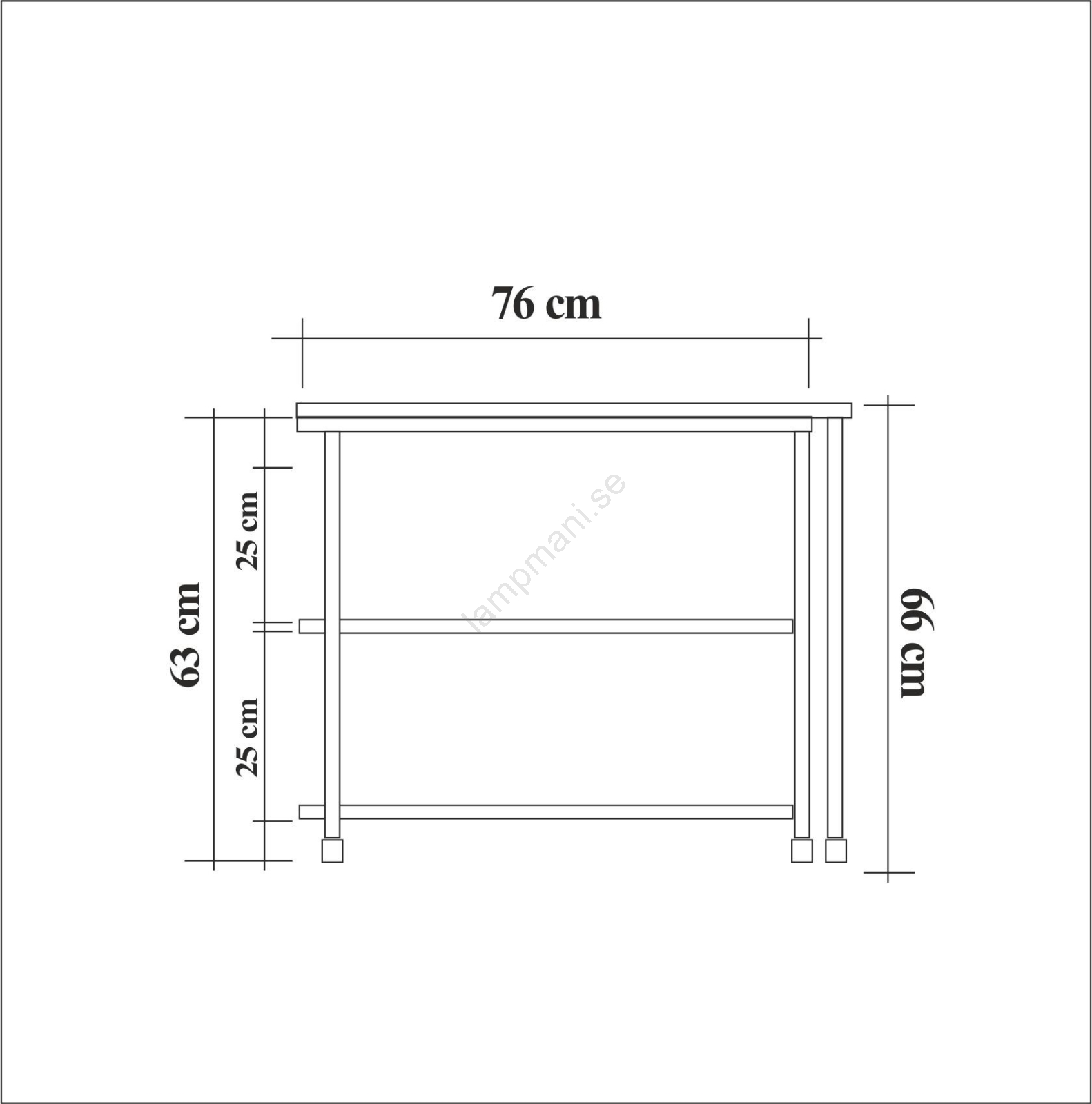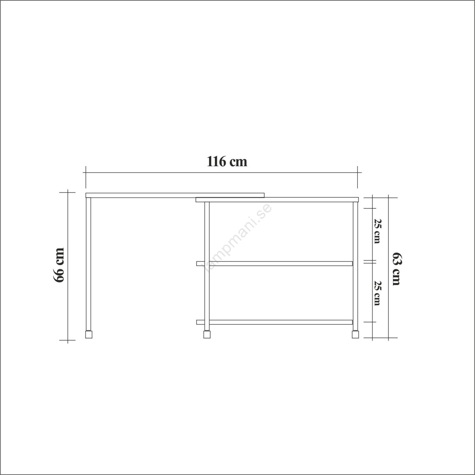 • Bordet har två hyllor.