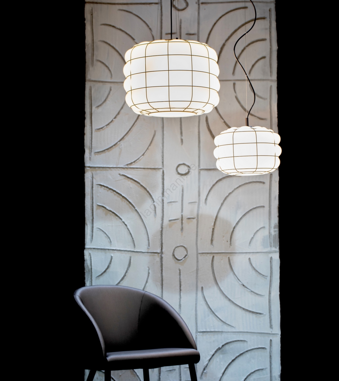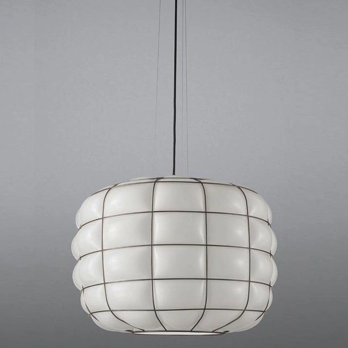 SIRU - Ljuskrona med textilsladd TERRA 1xE27/60W/230V svart/vit Venetiansk glas | Lampmani