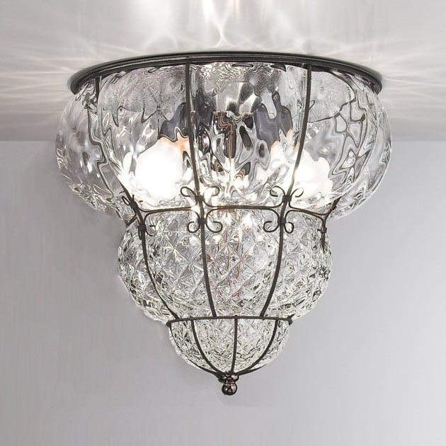• SIRU - Taklampa CLASSIC 3xE14/40W/230V diameter 25 cm genomskinlig/svart Venetiansk glas