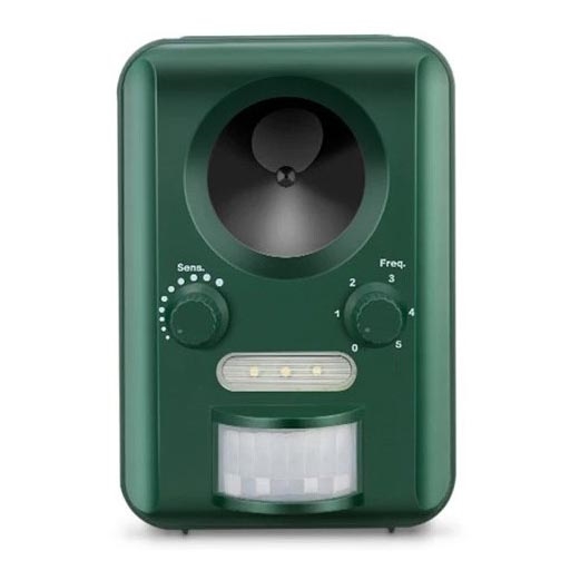 • Det är en kombination av ett mycket exakt detektionssystem som, när rörelse upptäcks inom sensorns räckvidd, utlöser starka ultraljudsvågor och skarpt ljus enligt stroboskopprincipen.