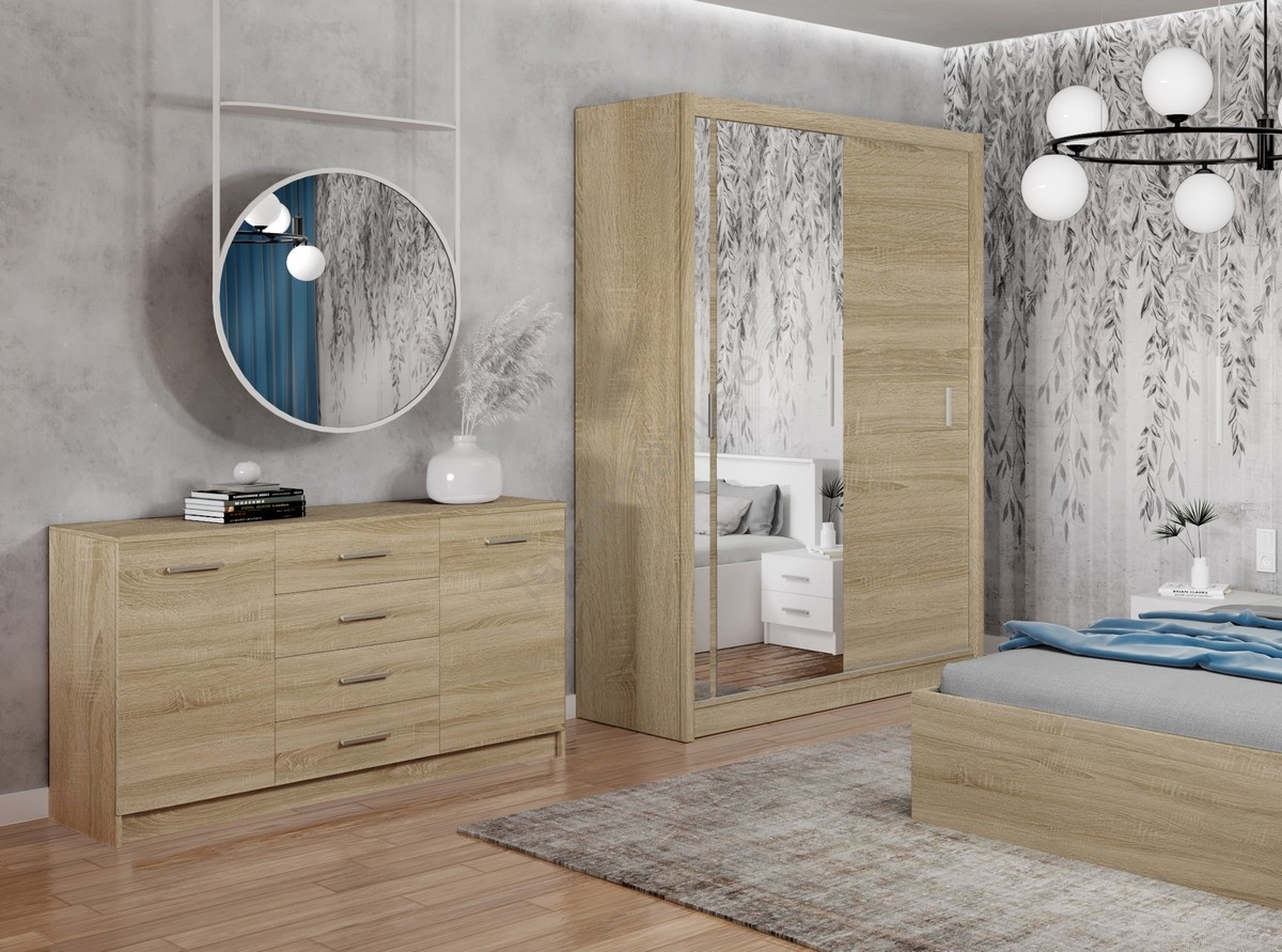 • Utrustad med 4 rymliga lådor och 2 skåp för förvaring av saker du vill ha nära till hands.