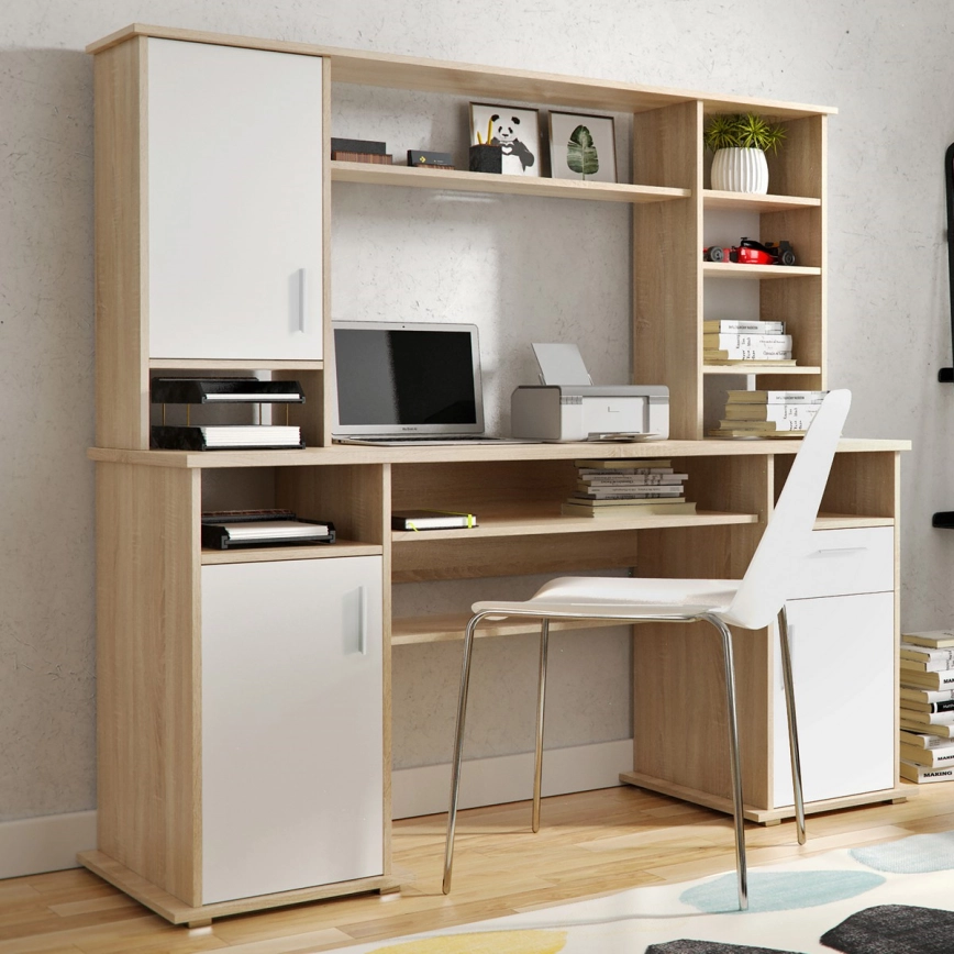 Skrivbord med hylla ELIAN, sonomaek/vit | Lampmani
