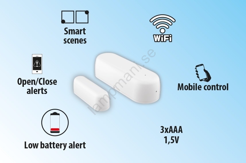 Smart fönster- och dörrsensor 2xAAA Wi-fi Tuya | Lampmani