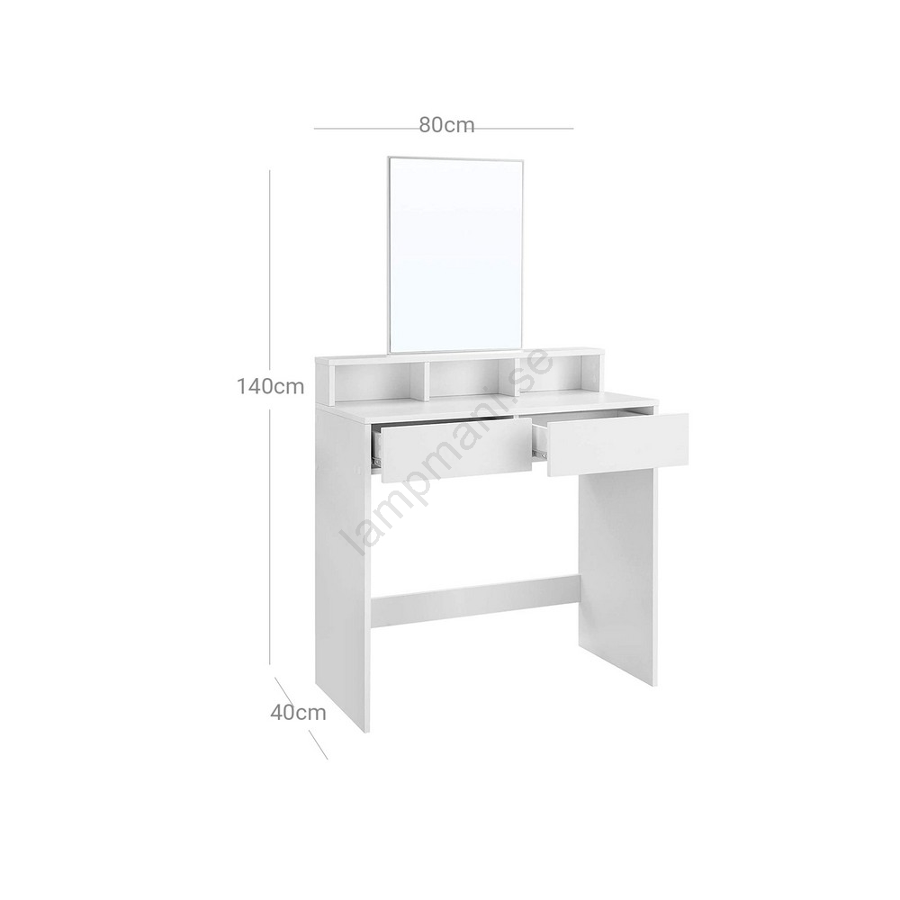 • 2 lådor och en hylla håller dina hudvårdsprodukter och ditt smink lättillgängliga.