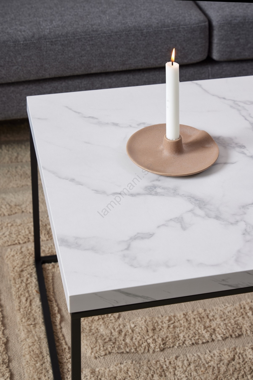 • Bordsskiva i vit Carrara-marmor i grov melamin, bas i matt svart, kraftigt pulverlackerat stål.