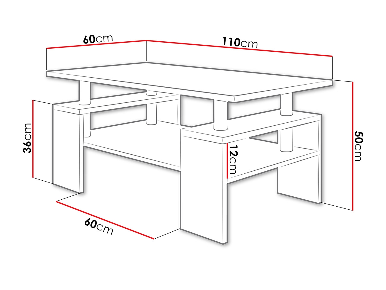 • Tillverkat av laminerad skiva med en tjocklek på 22 mm (ben och ovansida) och 16 mm (hylla).