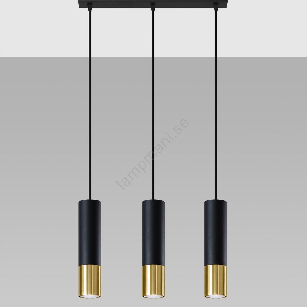 Ljuskrona med textilsladd LOOPEZ 3xGU10/10W/230V svart/guld kännetecknar snygg och funktionell design. En glödlampa med GU10 lock är lämplig för lampan. Här kan du köpa andra glödlampor till förmånliga priser. Du kommer att få ett intressant tillägg till ditt hem.