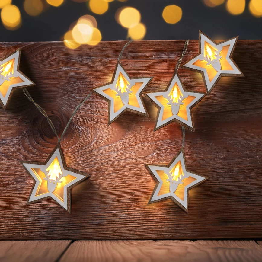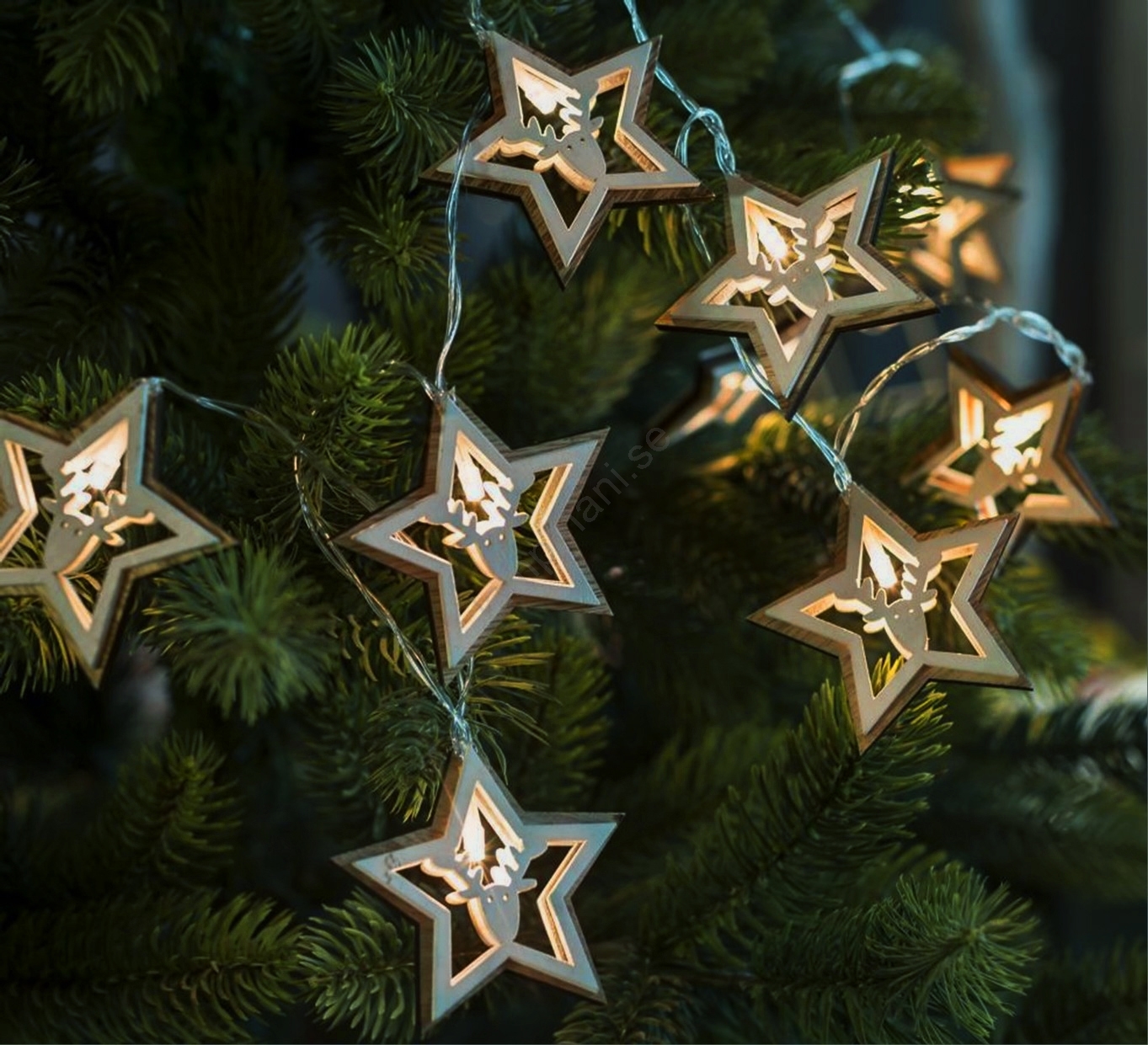 • Juldekorerad ljusslinga med LED-stjärnor.