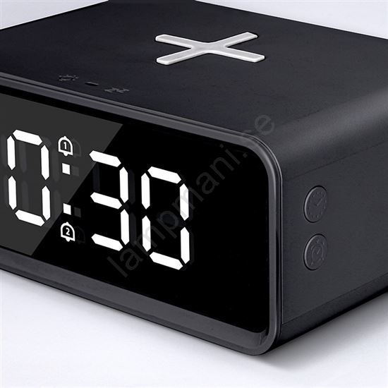 Digital klocka med Qi trådlös laddare 230 V/CR2032, svart