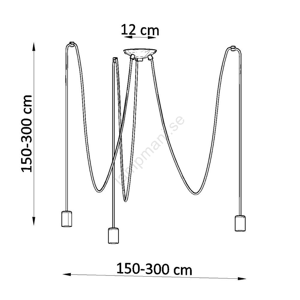 Sollux SL.0370 - Ljuskrona med textilsladd EDISON 3 3xE27/60W/230V spindel svart | Lampmani