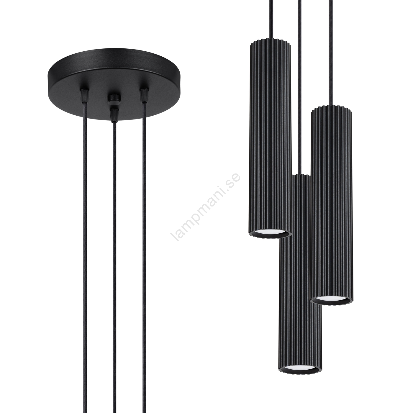 Sollux SL.1576 - Ljuskrona med textilsladd KARBON 3xGU10/10W/230V svart | Lampmani