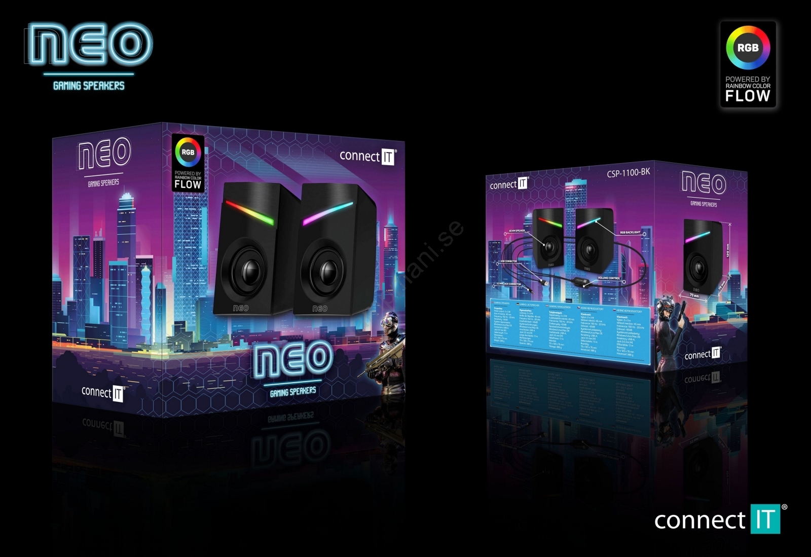 CONNECT IT CSP-1100-BK - KIT 2x LED RGB Gaming högtalare 6W/5V svart | Lampmani