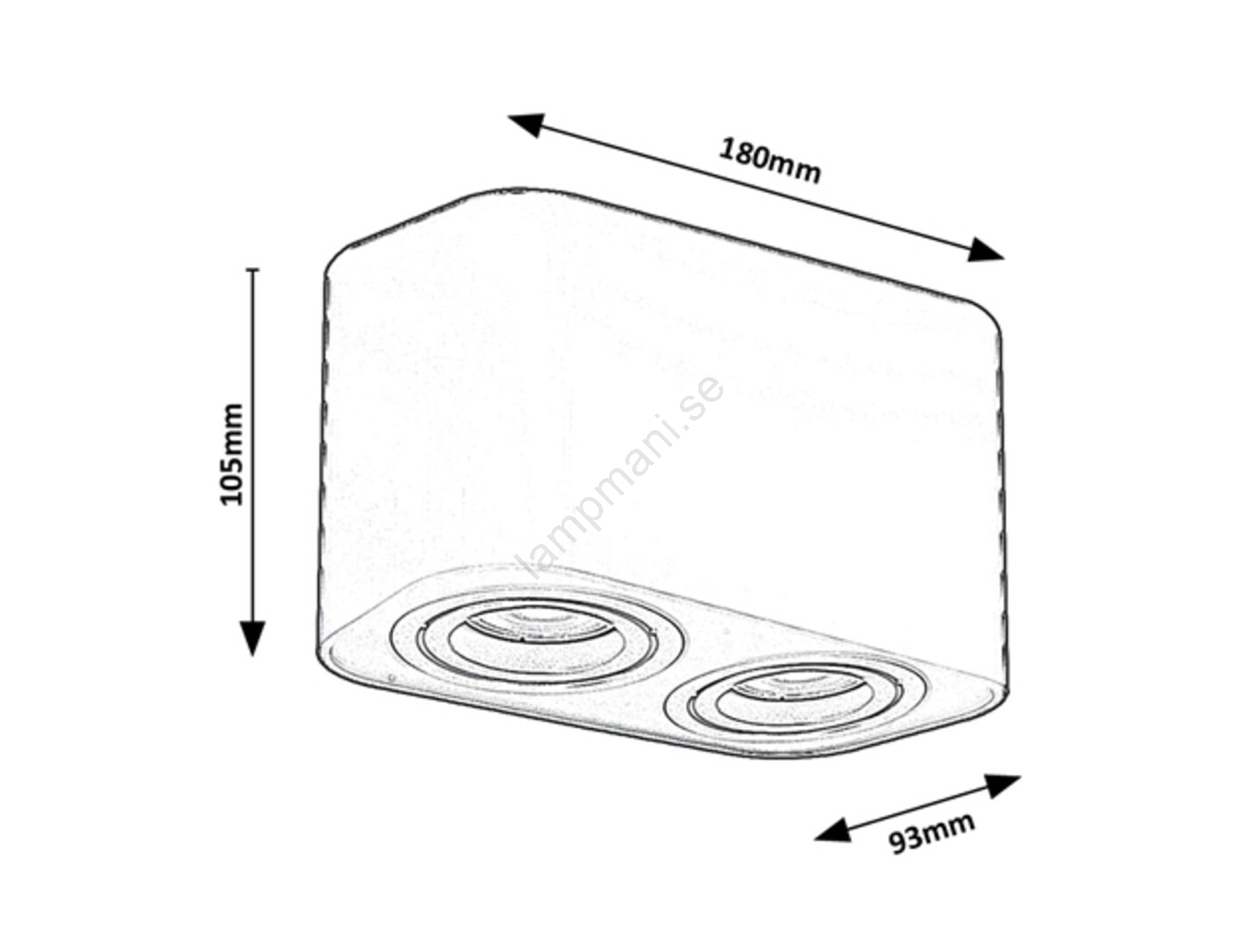 Det minimalistiska taklampan Kobald med 2 lampor är ett utmärkt val för ditt moderna vardagsrum, sovrum eller arbetsrum. Denna matta vita fyrkantiga modell med rundade hörn är helt tillverkad i aluminium. Taklampan kan användas med två lampor, vardera med en effekt upp till 42W. Sockeltypen är GU10. Utspridningsvinkeln kan vid behov justeras med 15° för båda ljuskällorna. Beroende på rummet där du installerar Kobald-lampan kan du välja lampor som avger varmt eller naturligt vitt ljus. Bredden på den infällda och yttre 2-lampors taklampan är 180 mm, höjden 93 mm, avståndet från taket 105 mm. Denna modell levereras utan ljuskällor.